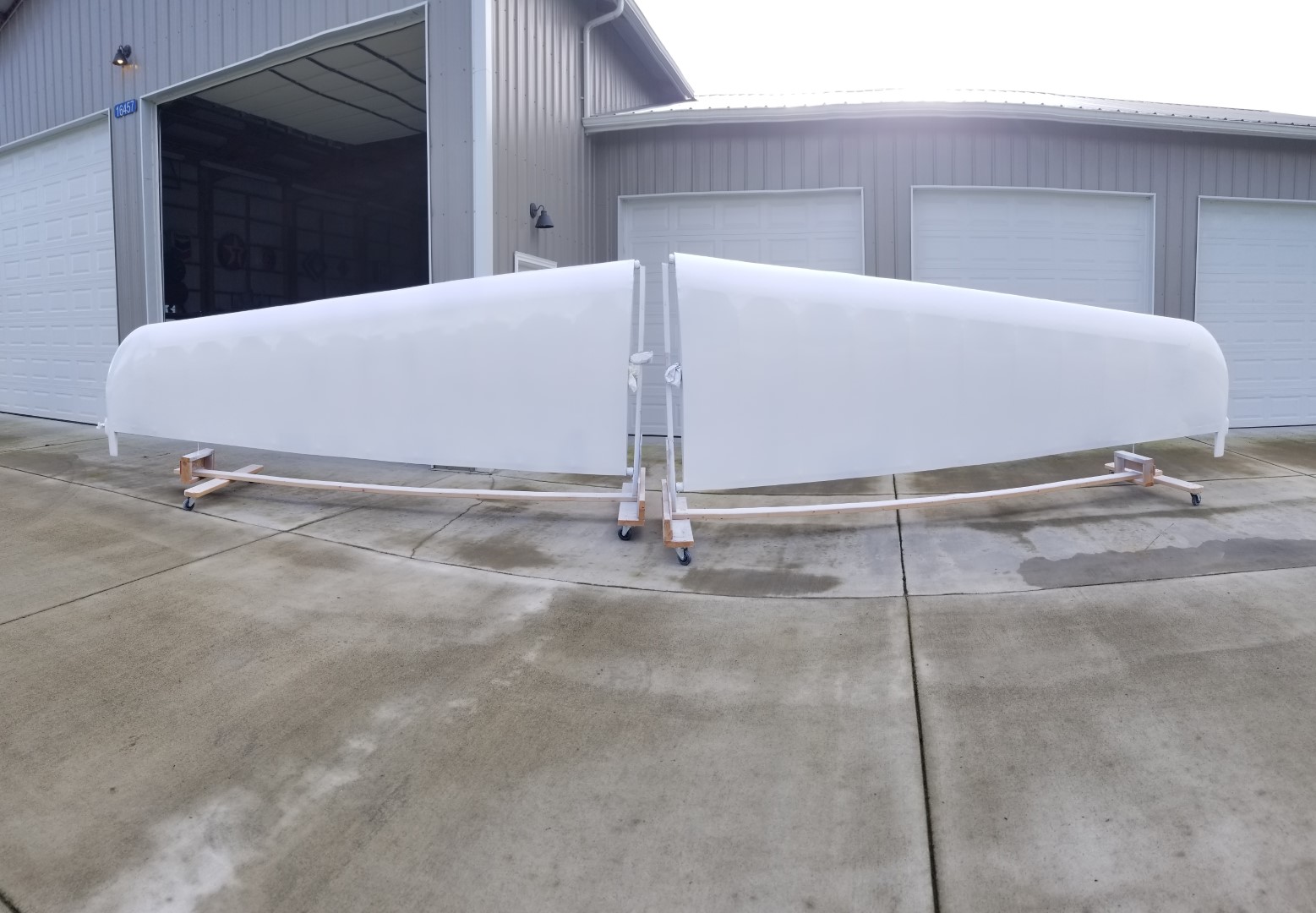 A break in the weather allowed me to briefly move the wings outside and admire the repainting. This is the last time they'll be pure white.